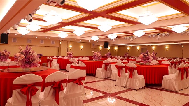 皇宮廳—金碧輝煌、皇宮式裝修,面積1038㎡,層高8.6米,配備愛(ài)情階梯、軌道威亞、二層觀(guān)禮臺(tái)、浪漫燈光秀、旋轉(zhuǎn)升降舞臺(tái)、頭頂天幕連接開(kāi)合大屏。可承接50桌的大型宴會(huì),也可舉辦600人的大型會(huì)議;還可用作會(huì)展、車(chē)展場(chǎng)地,每逢節(jié)假日還為市民上演文藝節(jié)目。